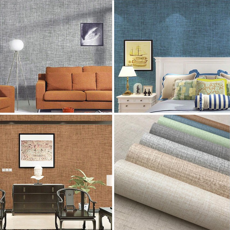 Description: 10 Meter Wallpaper Plain Solid Color Linen Wall Paper Dining